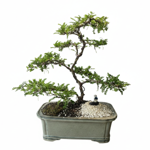 צמח בונסאי הוא ותיק כבר עם מערכת שורשים ענפה מגיע מוכן מעוצב בתוך כלי ככה שלא תצטרכו לאקלם אותו בשתילה מחודשת , פשוט להניח במקום המתאים ולנהות ממנו