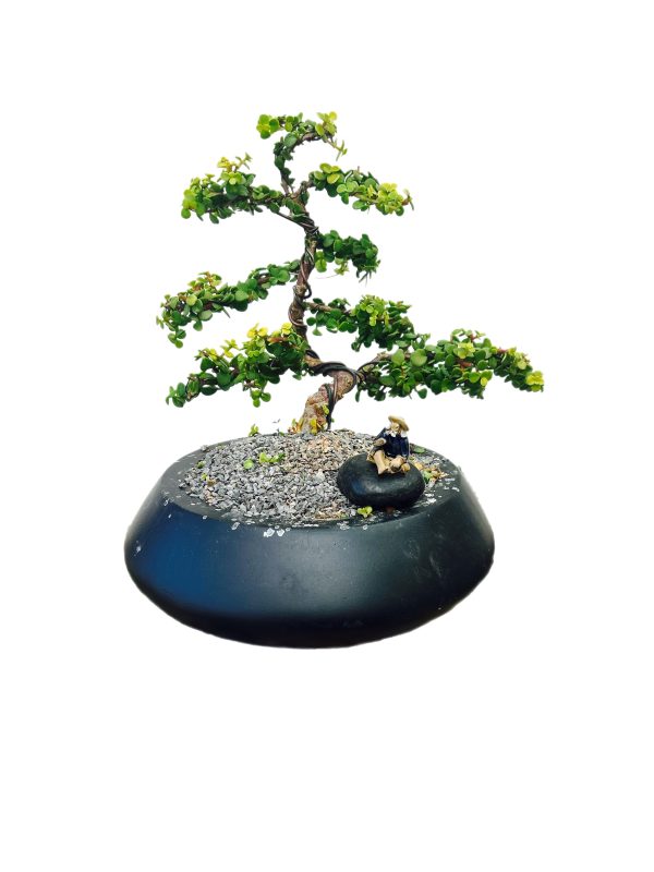צמח זה מעוצב ע”י אומן בונסאי בעבודת יד ומגיע עם כלי קערה ,הצמח והכלי מגיעים בדיוק כמו בתמונה כולל פסלון דייג.