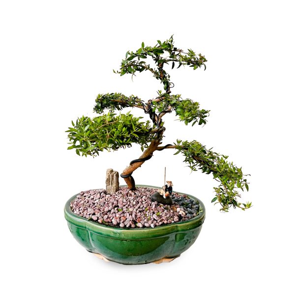 צמח זה מעוצב ע”י אומן בונסאי בעבודת יד ומגיע עם כלי מחרס ,הצמח והכלי מגיעים בדיוק כמו בתמונה כולל פסלון דייג.